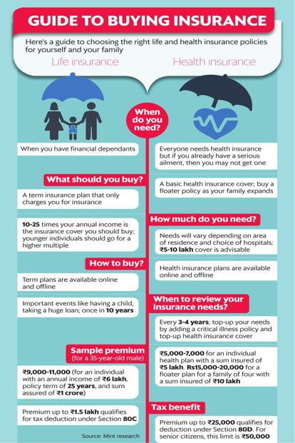 A health insurance policy pays for your hospital bills and life insurance provides timely financial support to your loved ones after you die. Both are important covers to have and we tell you who needs these policies, how much and how often one needs to review the cover.